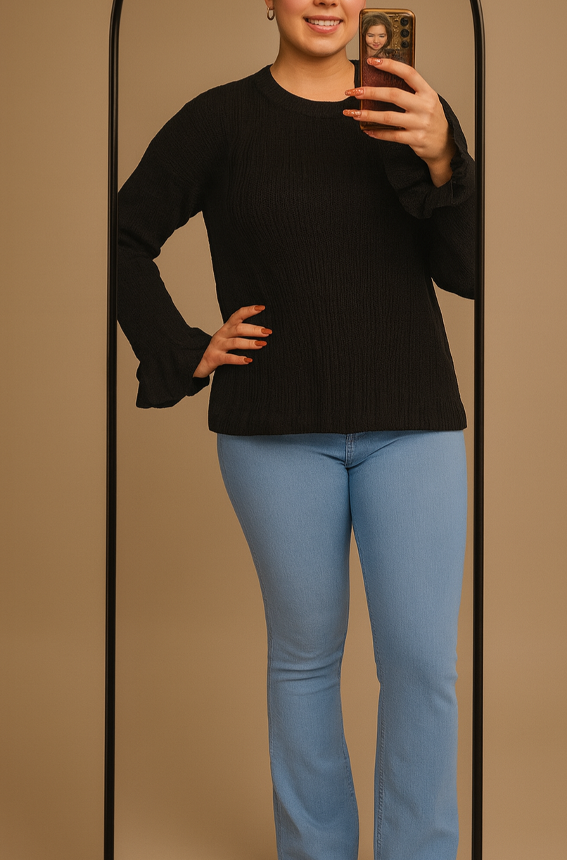 Pull à rayures en tricot épais uni à manches pétales